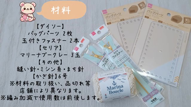 ダイソーのバッグパーツを使ってポーチを編みます