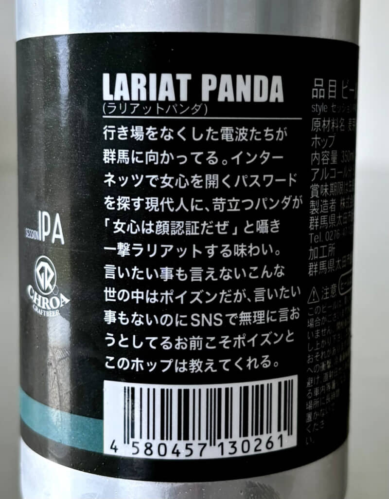 ラベルに書かれたコンセプトの意味不明さに定評のある、群馬県太田市のクラフトビール「CHROA(クロア)」の新作が2年振りに発表されました。今回のテーマはどうやら、「近年のネット社会に物申すパンダ」とのことです……どういうこと?