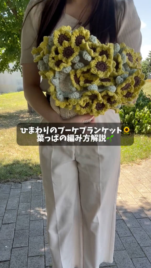 【かぎ針編み】ひまわりのブーケブランケット編み方解説/How to make a sunflower bouquet blanket