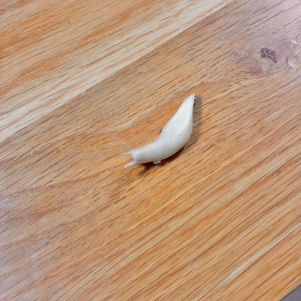 そんなmanamiさんがある日ふと机の下を見ると、薄暗い場所にナメクジらしきものがいて思わず声が出てしまったとのこと。投稿された画像はしっかり触覚をもち、フォルムや質感までナメクジそのものです。