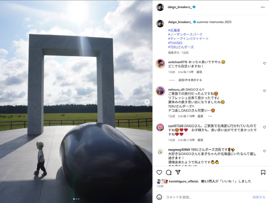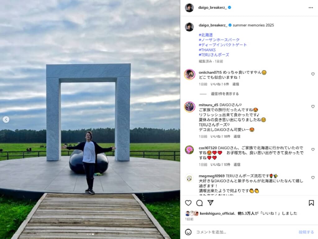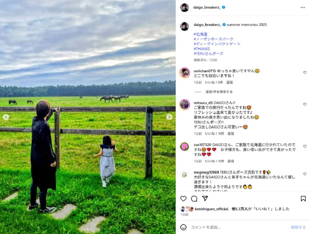 DAIGOさんは“summer memories 2025”と銘打って、家族で北海道旅行した際の写真を多数掲載。
