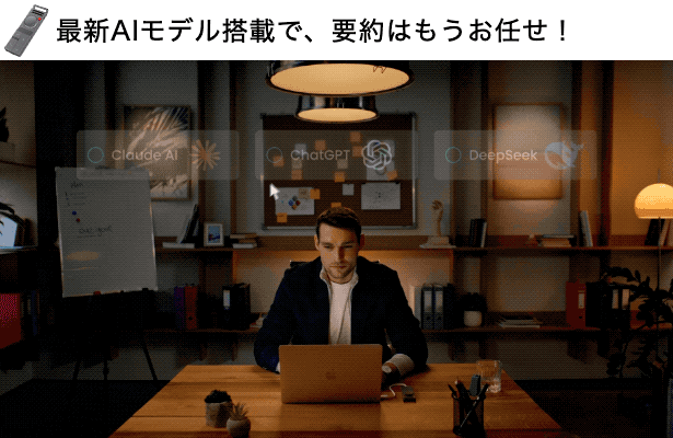 要約を行うAIは、「ChatGPT-5」「Claude 3.5」などの最新AIモデルを採用。長時間の会議やセミナーでも、精度の高い議事録を瞬時に生成できます。