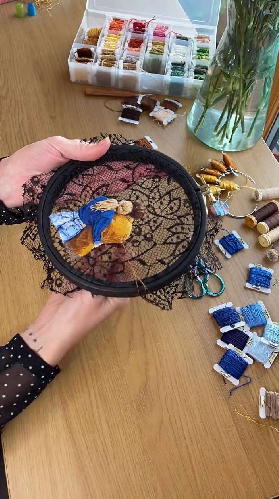 動画を投稿したのは、スコットランド在住のInstagramユーザー「Sila Gur」(@jolly_hoops)さん。2018年に刺しゅうに出会ったという投稿者さんは、それまで学んできたというアートやファッションと刺しゅうとを組み合わせたような作品の数々を公開しています。