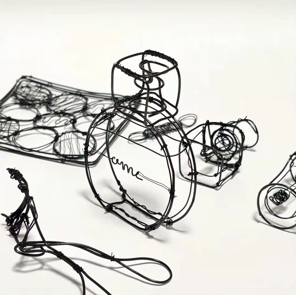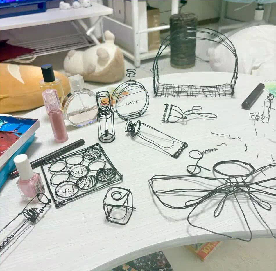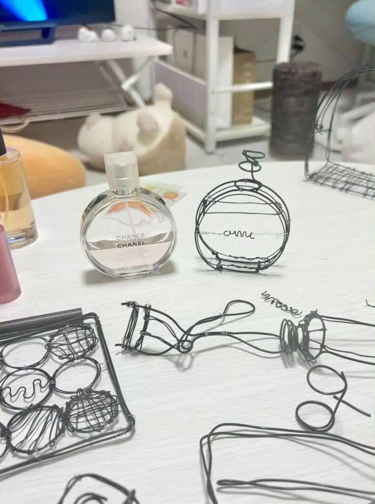 立体物だけど絵に見える……!? 美大生が針金で香水の瓶やバッグを再現した作品が、TikTokで「脳がバグる」と話題です。