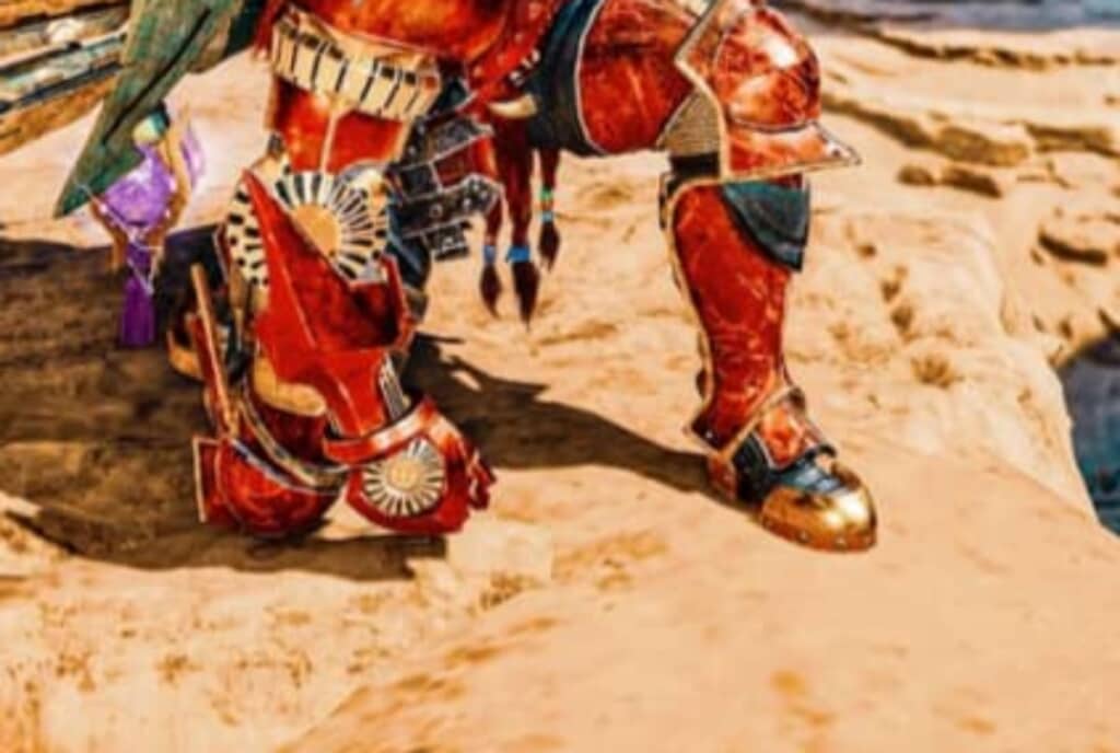 また、武器を手にして背中を見せている凛々しい姿や、戦闘後なのか顔に血の痕があり、手を天に向けてかざしている雄大な姿も披露しています。