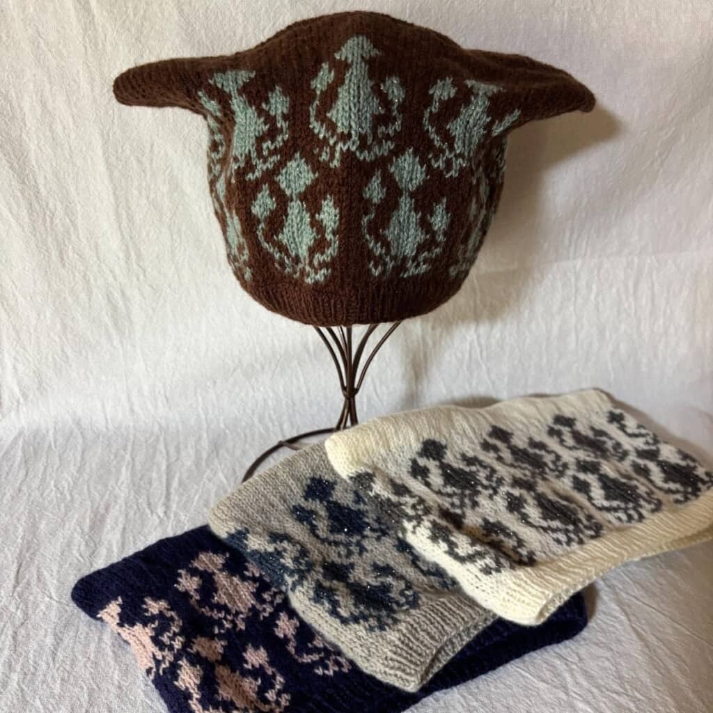 今回、イベントで販売するために制作したニット帽を公開したetsukoさん。一見、ダマスク柄のニット帽に見えますが……?