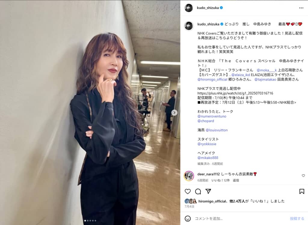 愛媛では結構目立つ服装のもよう(画像は工藤静香Instagramから)