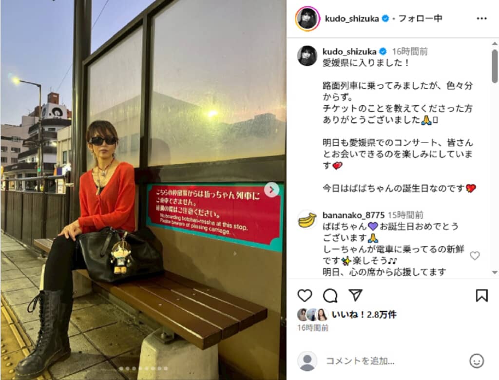 名も顔も知れたミュージシャンである工藤さんが当たり前のように街中の交通機関を利用している“激レア”な姿に、投稿を目にしたファンからは「静香さん切符買ったんですか? 静香さんが切符!」「フェラーリやポルシェでなく電車!?」「電車に乗ってるの新鮮」「電車でしーちゃんに遭遇した方が羨ましい」など、驚がくが入り混じった歓迎コメントが続々。