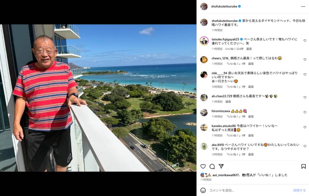 落語家でタレントの笑福亭鶴瓶さんが8月20日にInstagramを更新。オーシャンビューが美しいハワイの自宅のもようを公開しています。
