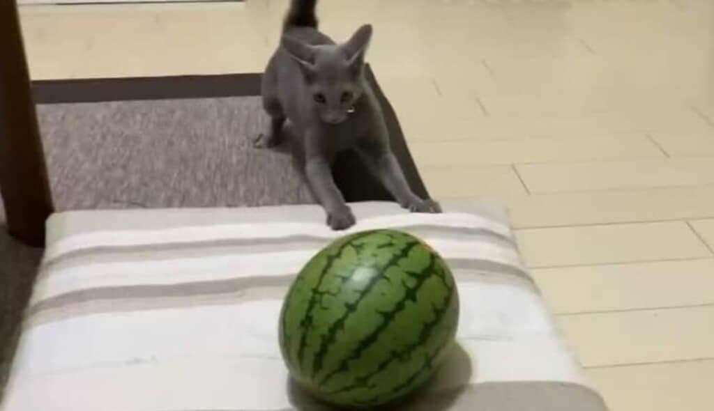 愛猫にスイカを見せた次の瞬間…… 「おなか痛いww」電車で見ちゃダメな光景が285万表示「何度見てもヤバい」
