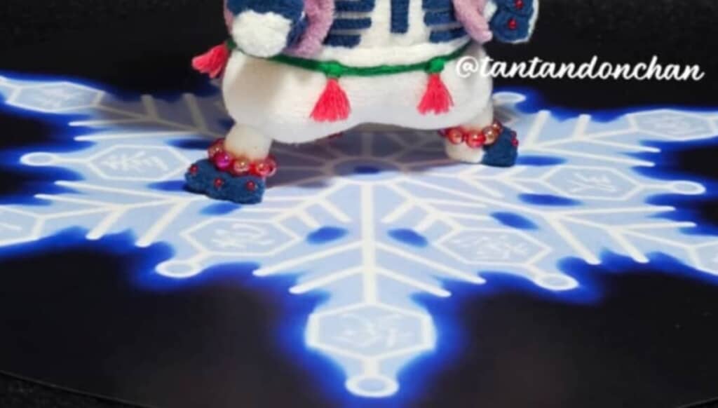さらに足元に雪の結晶を描きながら繰り出す技「術式展開 破壊殺・羅針(らしん)」のポーズも決めていて、猗窩座ファンも思わずにっこりしてしまうかわいらしい仕上がりになっています。これはすごい!