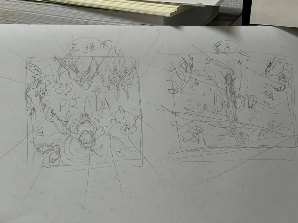 用意したのは、「ディオール」と「プラダ」の紙袋。本来ならブランド名が書かれているだけのシンプルなデザインですが、泡さんは手描きのイラストを加えました。