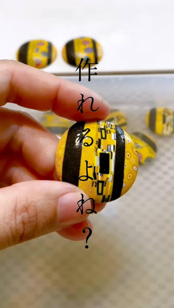 kikoさんは、以前世界的に有名な画家グスタフ・クリムトの作品「接吻」をモチーフにした帯留めを制作。日本の伝統衣装と西洋美術の魅力を融合させたいとの思いで作ったそうなのですが、フォロワーさんからは「のりたまみたい」と予想外のコメントが寄せられたといいます。