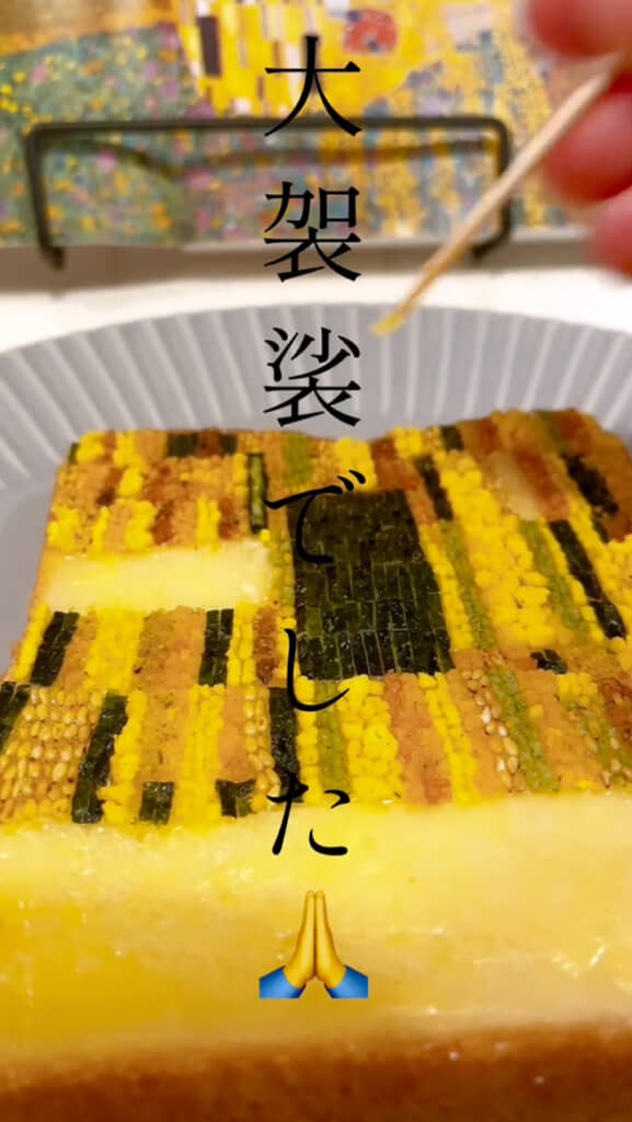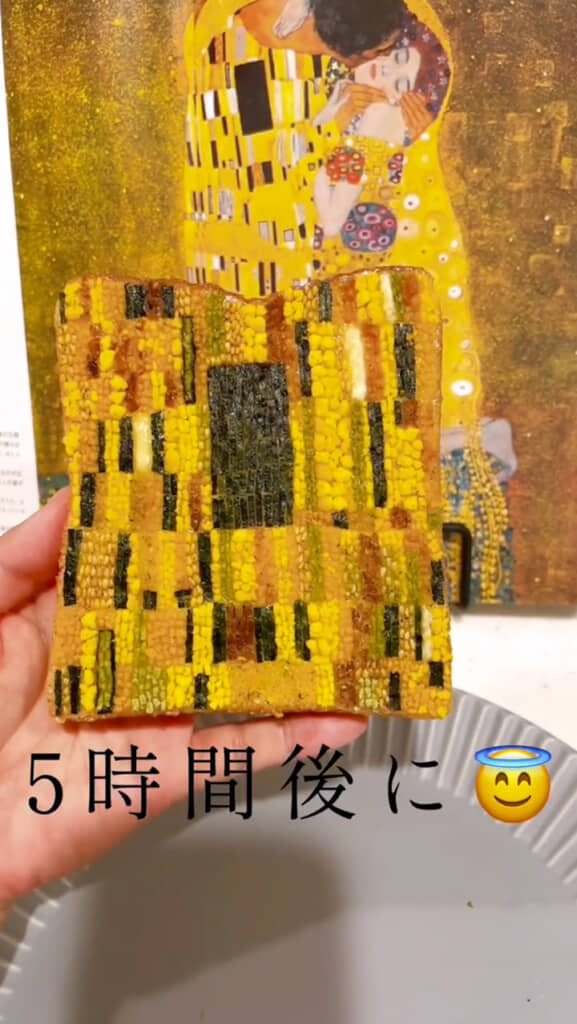 フォロワーさんからのコメントをきっかけに、のりたまでクリムト模様を作る様子がInstagramに投稿されました。動画は記事執筆時点で95万再生を超え、2万5000件以上の“いいね”を獲得するなど注目を集めています。