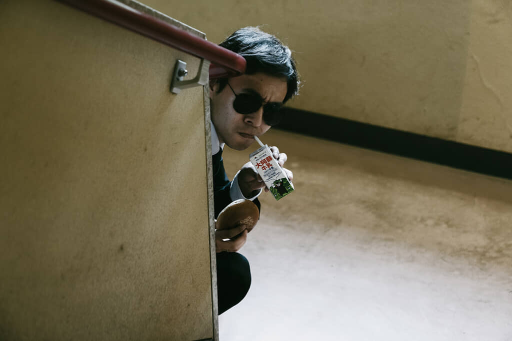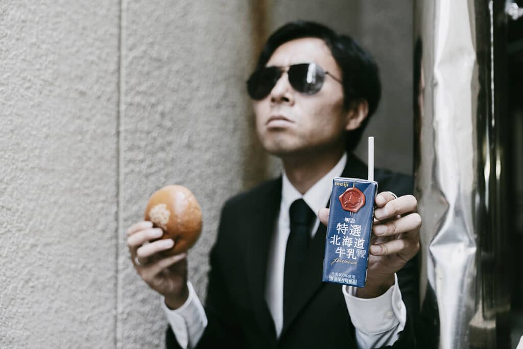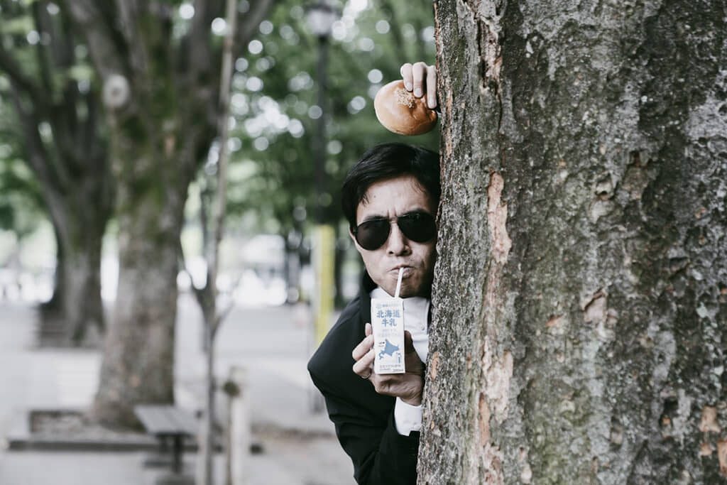 私は彼をもうずっと張り込んでいる。張り込みの定番、牛乳とあんぱんを片手に。