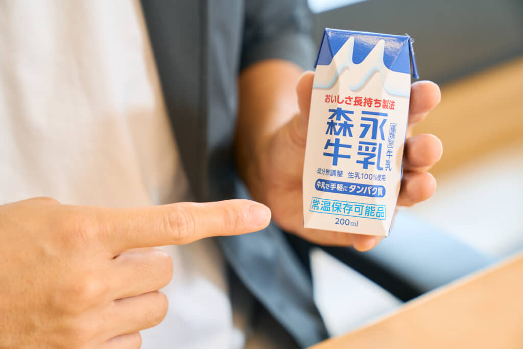 あまりにも「牛乳=冷蔵」というイメージが浸透しすぎているため、常温保存ができるのに冷蔵コーナーで売られていることもあるんです……なのでよく見てみてください。ロングライフ牛乳なら、未開封であれば購入後に常温保存していただいてもまったく大丈夫です。