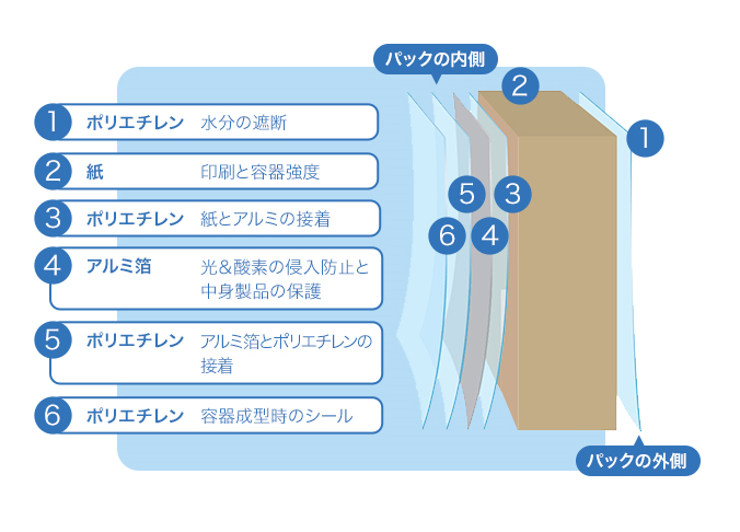 常温で長期保存を可能にする、ロングライフ紙パックの構造
