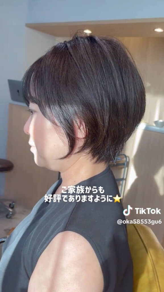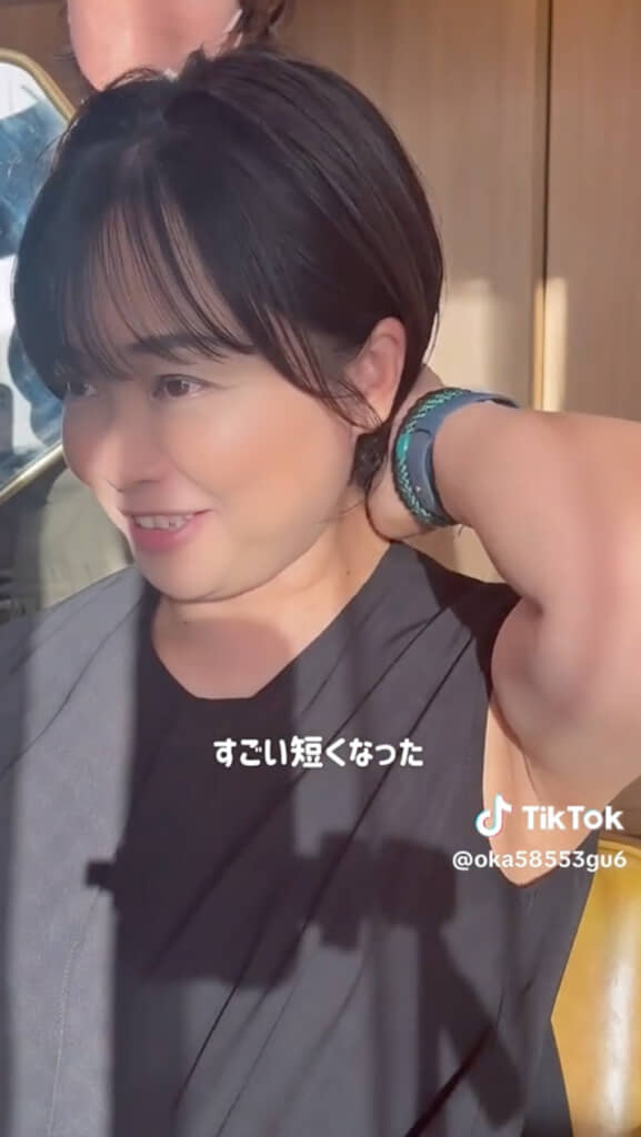 広島からきた40代女性。ばっさりカットしてショートヘアに大変身する様子がTikTokに投稿されました。動画は記事執筆時点で、前編後編合わせて13万再生を超えています。