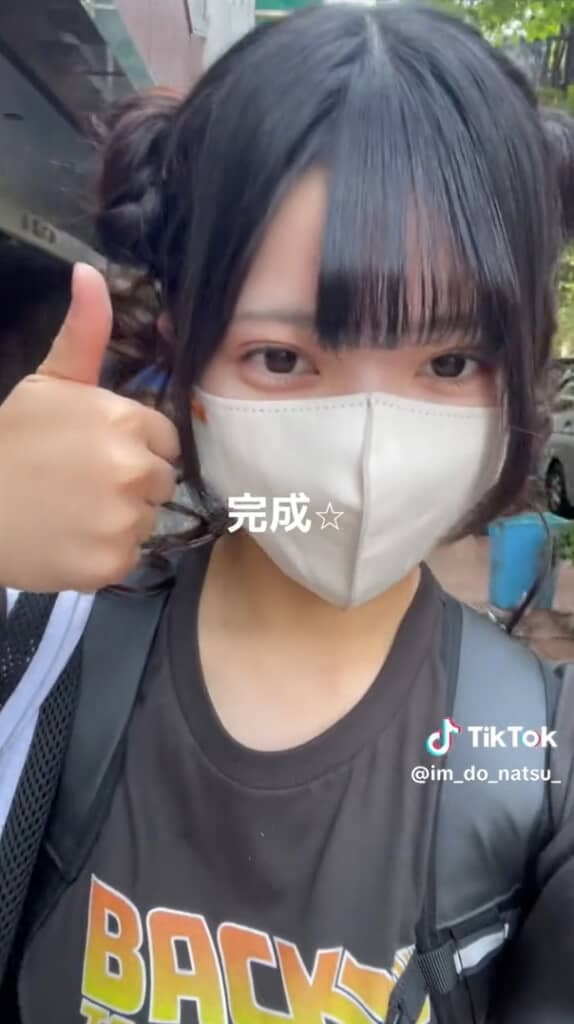しかしそんな若い女性の不安をよそに、美容師は一切の迷いなくゴールに向かって手を動かします。「すごいぐるぐるにするじゃん…」とさらに不安を覚えるなつさん。ここまできたらもう美容師の腕にゆだねるしかありません。そして数分後、完成した髪形は……。