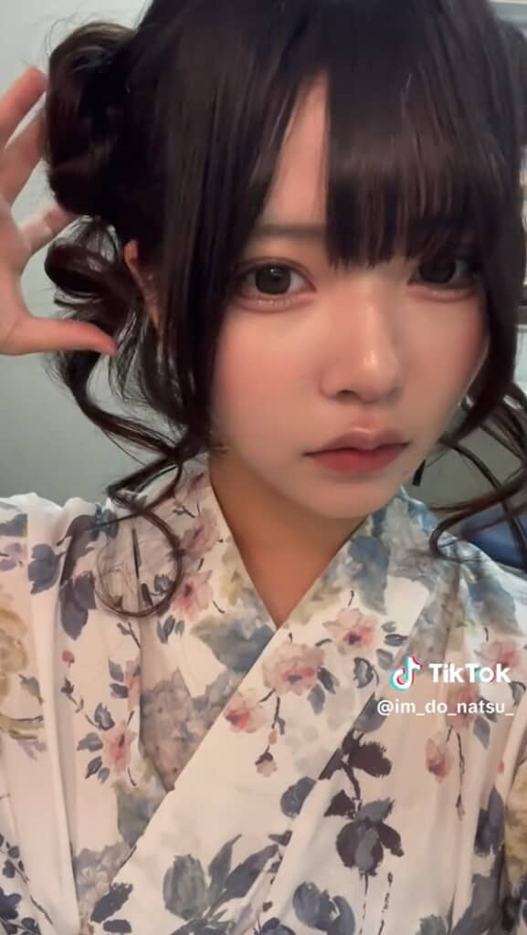 なつさんは「めちゃくちゃ完璧だったし夜まで全然崩れなくて無双した」と感服。さらにこのクラゲヘアで浴衣に着替えメイクをすると、和装にもよく似合い、カールした毛先がとてもキュートです。