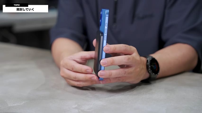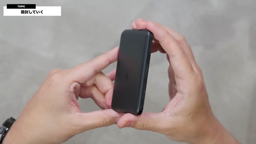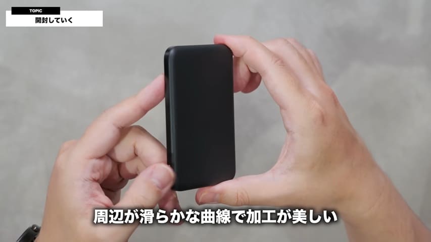 ワタナベさんがまず注目したのは、Anker史上最薄クラスの薄さと滑らかな外観。もともと8.6ミリと薄いのに加えて、エッジ部分が丸く加工されている影響で、さらにコンパクトに見えます。側面の曲線美や光沢など加工の質感も好印象とのことです。