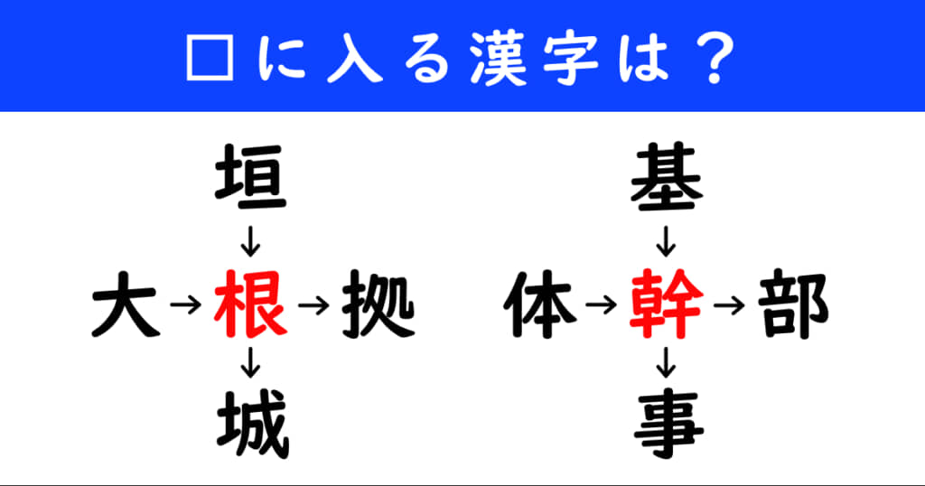 というわけで、全問正解すると「根幹」という熟語が現れます。