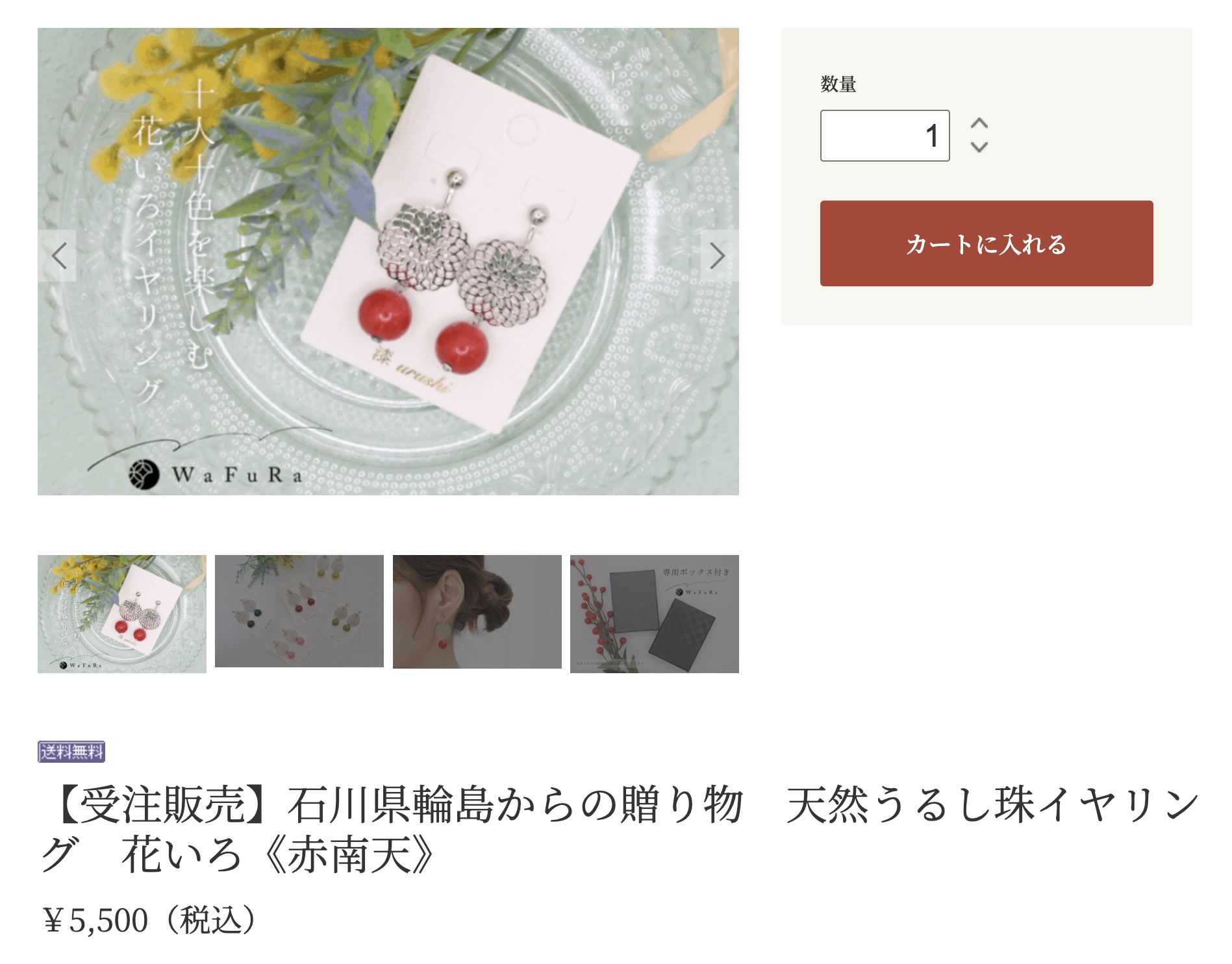当日、白色の水玉ワンピースに、赤色のベルトを着用された佳子さま。注目を集めたのは、その衣装の他、和物専門店「WaFuRa 和ふら」が手掛けるアクセサリー「天然うるし珠イヤリング 花いろ」です。