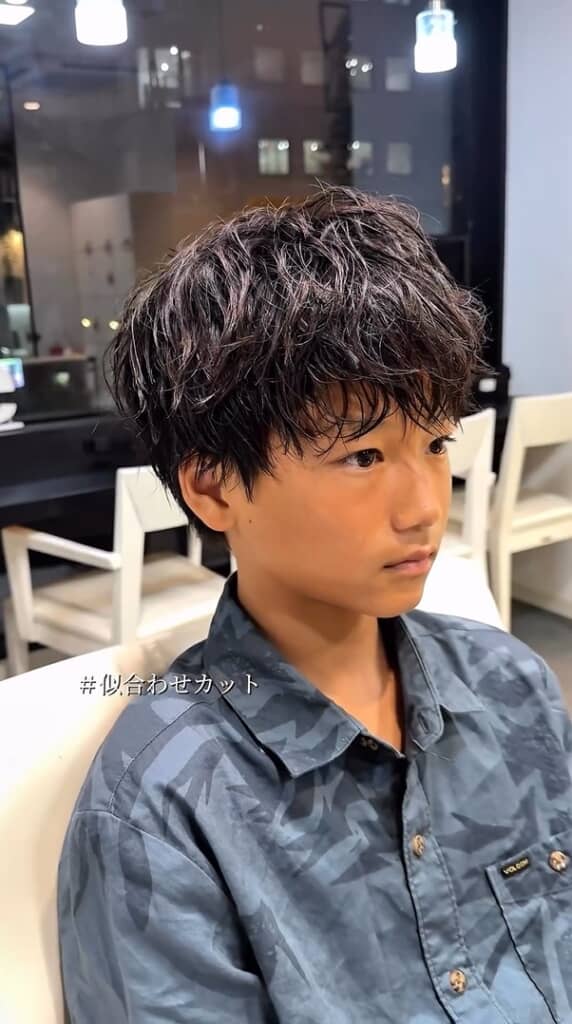 それから数カ月がたち、再び横井さんのもとに訪れてイメチェンすることになった男の子。前回のヘアスタイルからそのまま伸びた、ミディアムのセンターパートです。