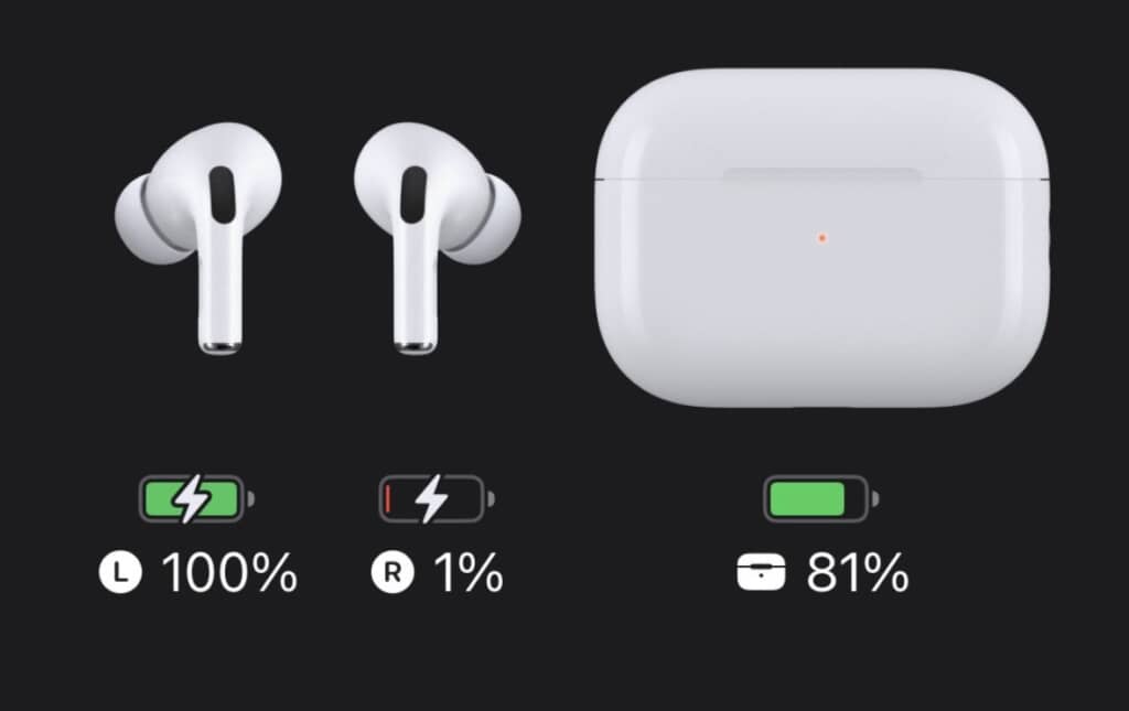 左側はしっかりと100%まで充電されているのに、なぜか右側だけ充電量が1%! これじゃ使い物にならないよ……。