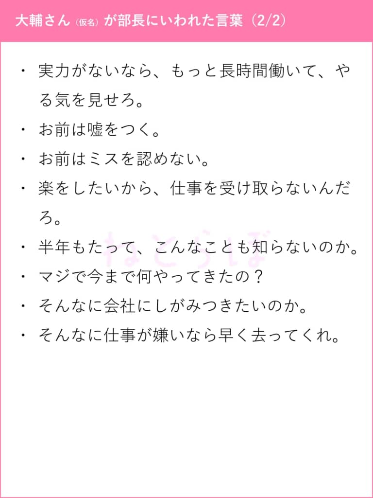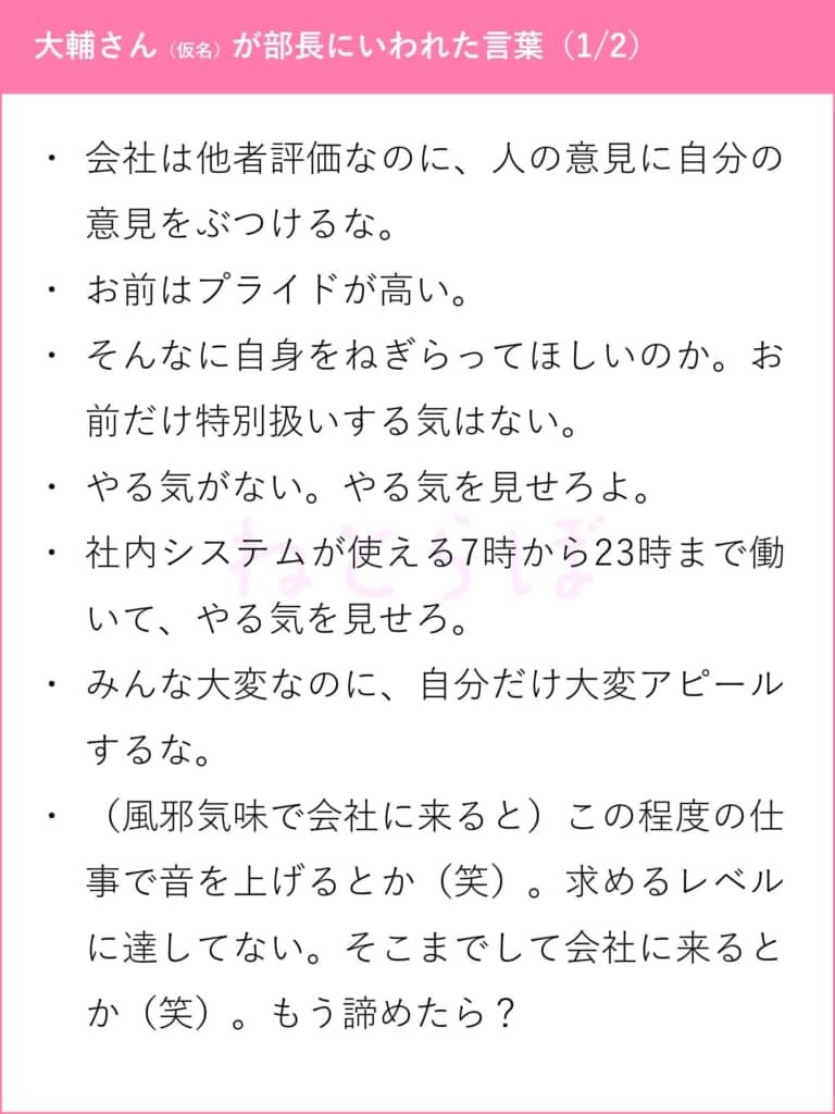 大輔さん(仮名)が部長からいわれたパワハラ発言