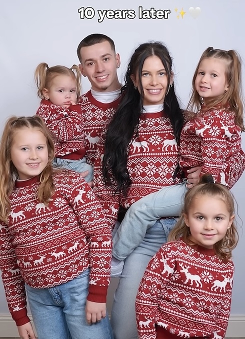 1つ目は、10代で子どもを迎えた夫婦の“10年後の姿”です(投稿者:TikTokユーザー Deserae/@karshnafamilyさん)。第一子が生まれたき、お父さんは19歳、お母さんは17歳という若さでしたが……。10年の時を経て、子どもはなんと4人に。子どもたちは全員女の子で、そのかわいらしい顔立ちは両親にそっくりです。
