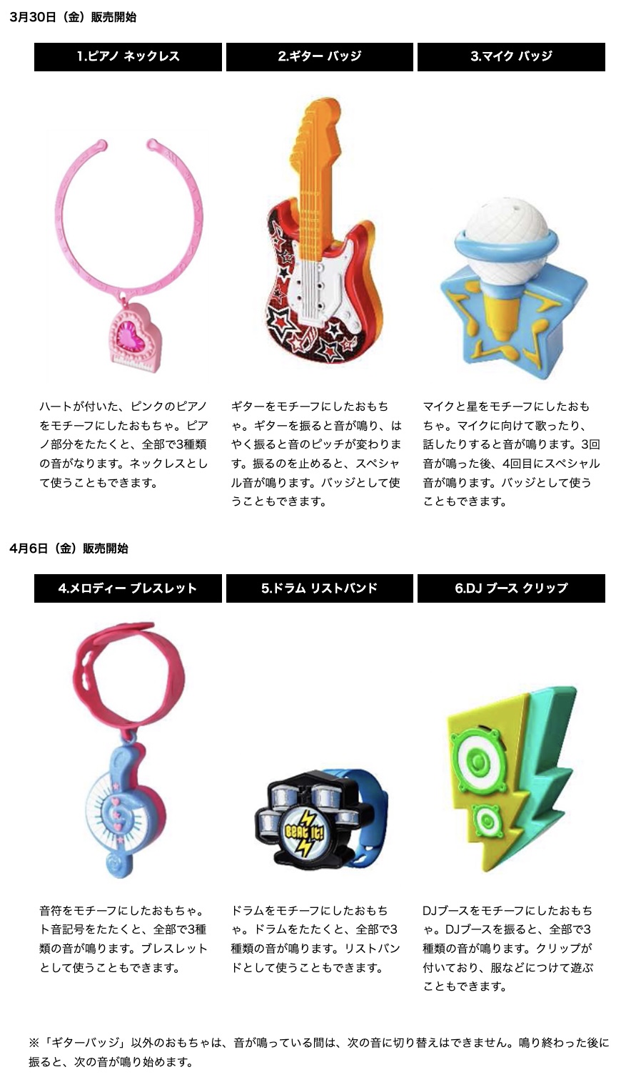 当時、マクドナルドはプレスリリースで「小さく、簡単に楽しめる操作方法なので、ミュージシャンになりきって、自分の体を動かしながら遊んだり、友達を集めていろいろなおもちゃを演奏すればミュージックバンドごっこも可能」とうたっていました。