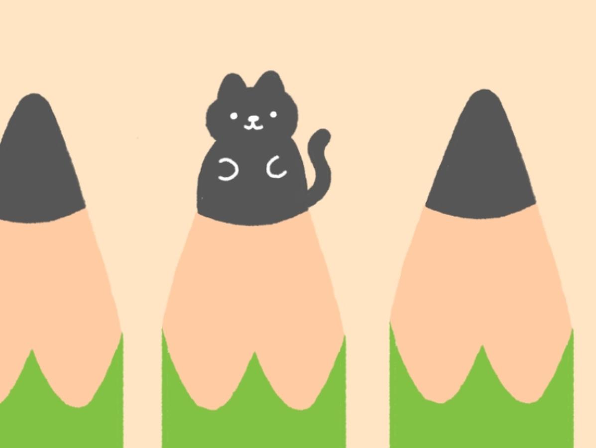 ねこは「えんぴつの芯」になって隠れていました! 見つかったかな?