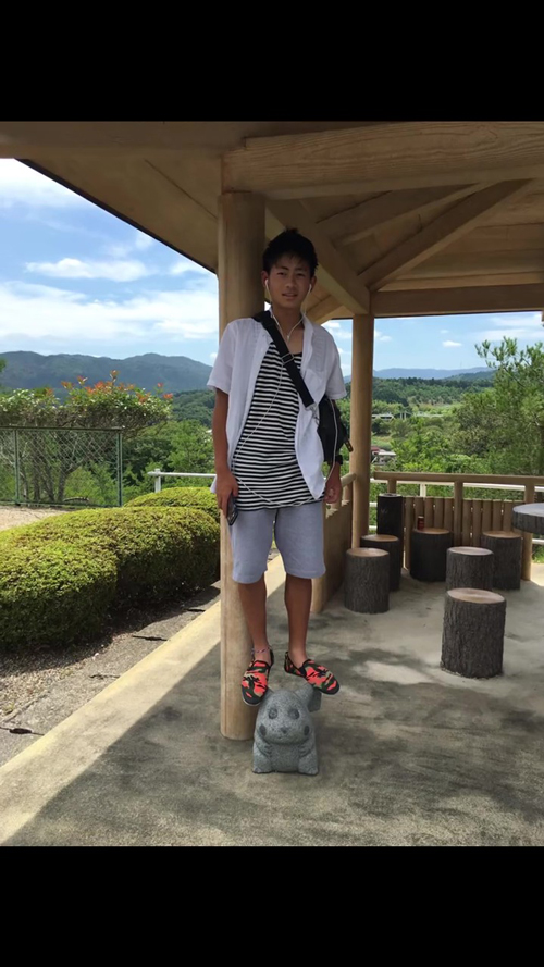 4枚目の写真には少年時代からやや成長した、14歳のりょうさんの姿が。黒ぶちメガネを外して髪の毛を伸ばし、爽やかな雰囲気を感じさせる見た目に変化しました。「片目一重、フェイスラインないのがコンプレックスで学生の頃アイプチとコロコロしまくったな」と学生時代を振り返っています。