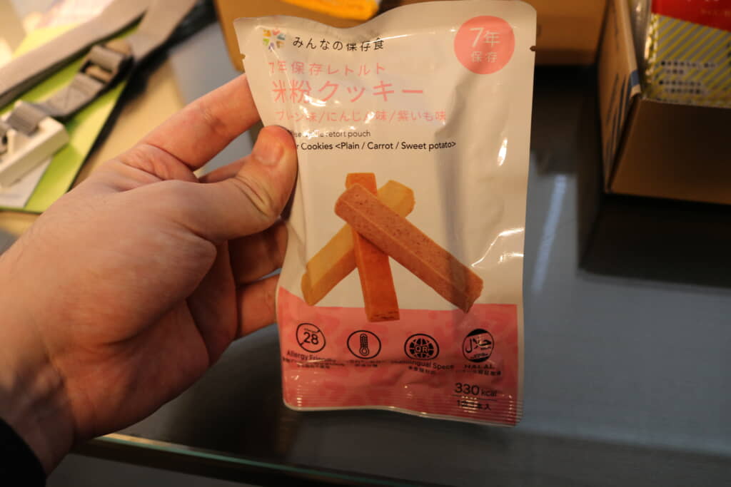 裏面には飲食物の賞味期限(約6年)が記されています。いつ起こるかわからない災害に備えることも大事ですが、備蓄品の使用期限・賞味期限を守ることも重要です。わかりやすい場所に賞味期限が書いてあると助かりますよね!