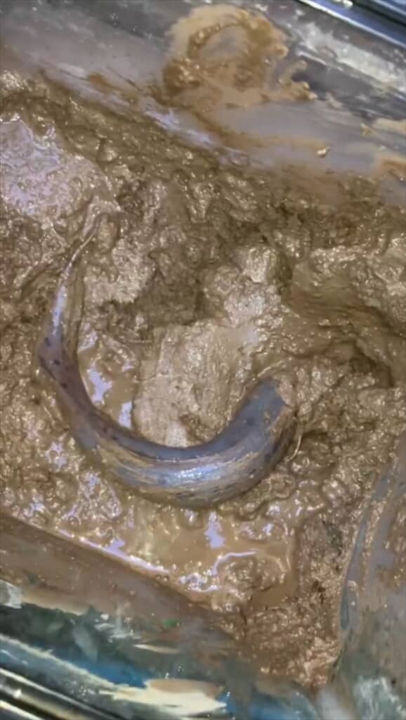 最後の4本目は、雨水がたまったまま48時間ほど炎天下に放置した状態を撮影したもの。RosehipPeachTeaさんが雨水を捨て、ドロドロになった土を掘り起こすと……クネクネと動く“謎の生き物”が出てきのです!