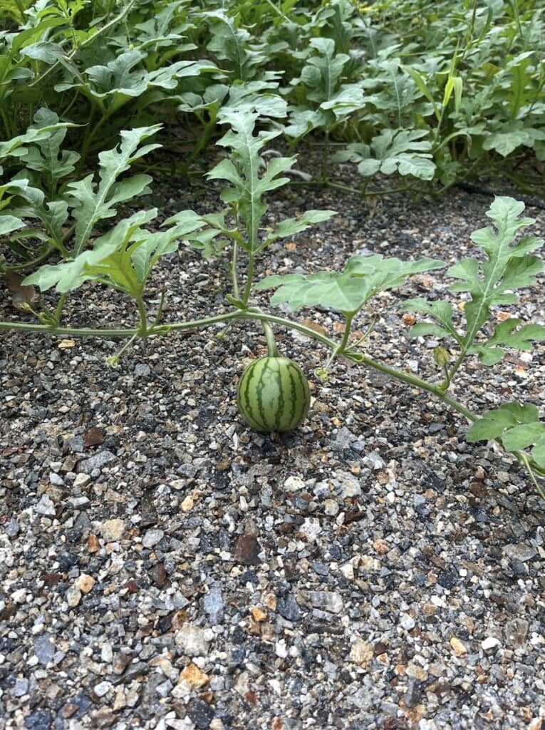 ねとらぼ編集部の取材によると、スイカを見つけたのは新川さんが運営する宿の庭とのことです。スイカはとても存在感があり、いかにも「唐突に生えてきた」という印象ですね。すごい生命力!