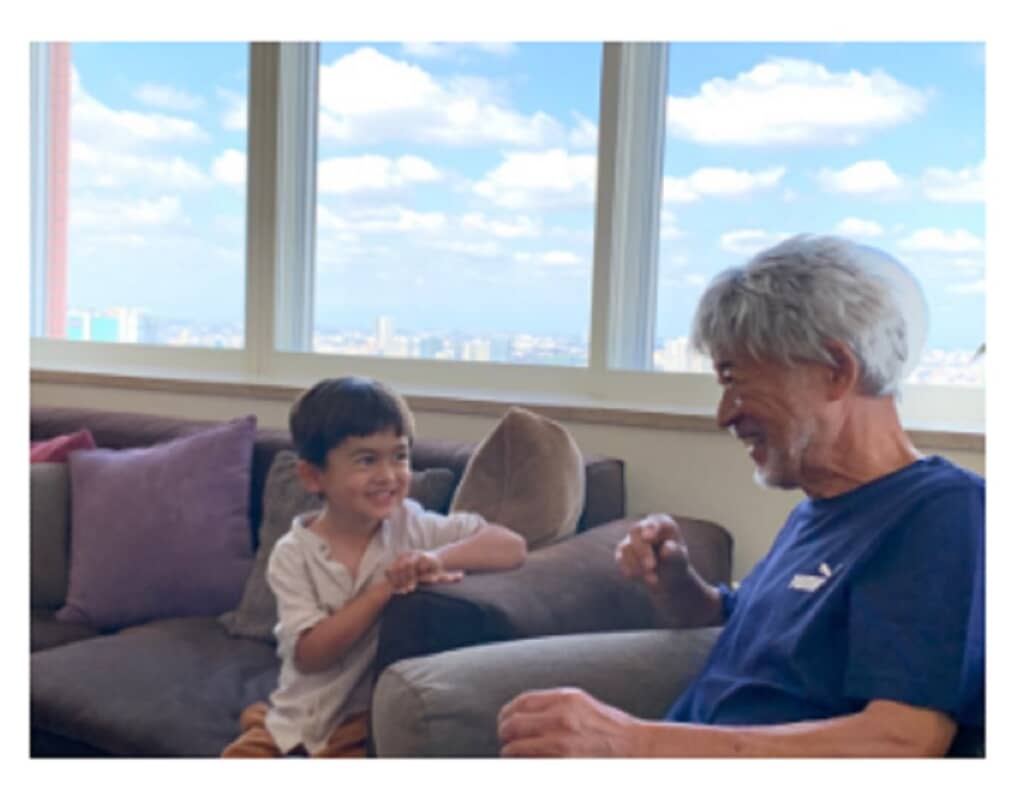 孫と遊ぶ黒沢さん(画像は黒沢年雄公式ブログから)