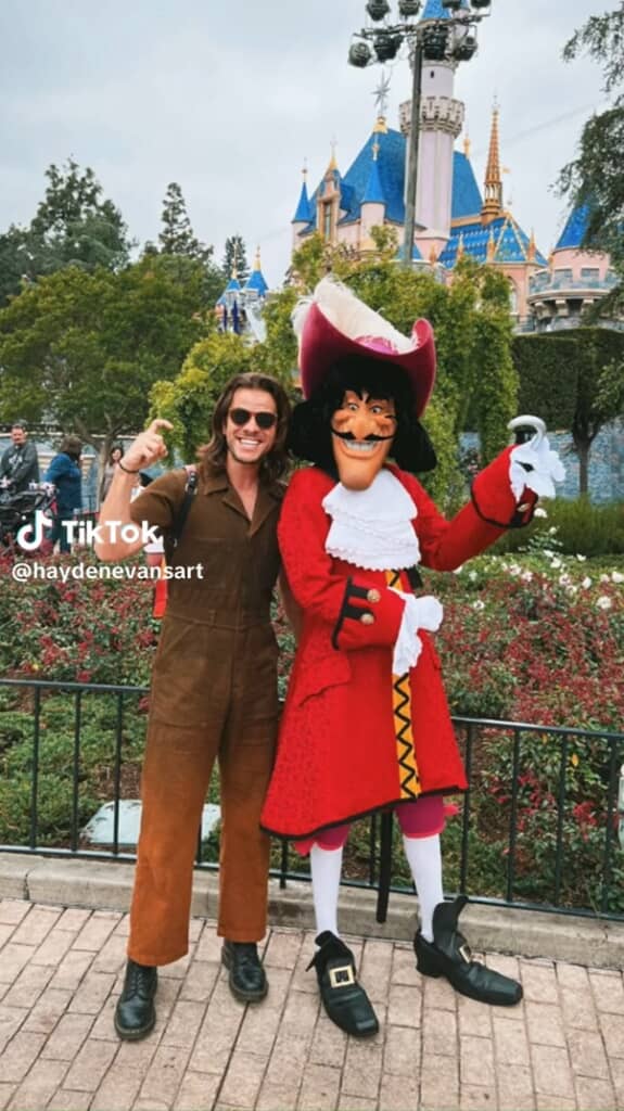 1/4)ディズニーランドでフック船長と笑顔の2ショット。指を曲げて“フックポーズ”、どこか本物の船長にも似た雰囲気が魅力的