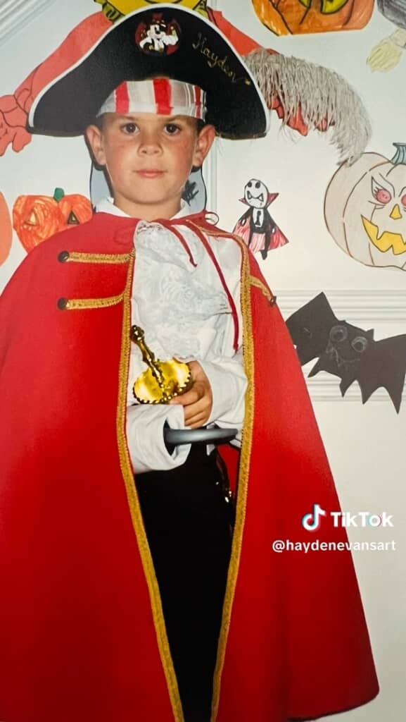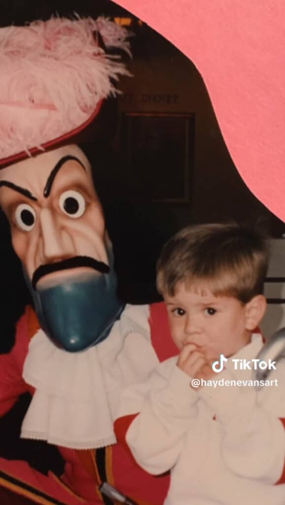 3/4)幼い男の子とフック船長の2ショット。そう、これがヘイデンさんの子ども時代。推し歴はまさかの幼少期から