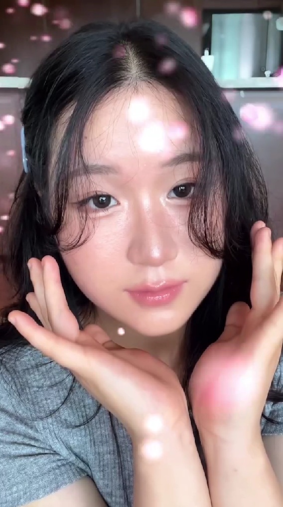 仕上げにリップやチークをのせると……先ほどまでとは印象の異なる姿に大変身! 整えられた眉、大きくぱっちりした目元、血色感のある唇、そして透明感のある肌が際立ち、K-POPアイドルを思わせる華やかさが漂います。ビフォーアフターのギャップに驚かされますね。