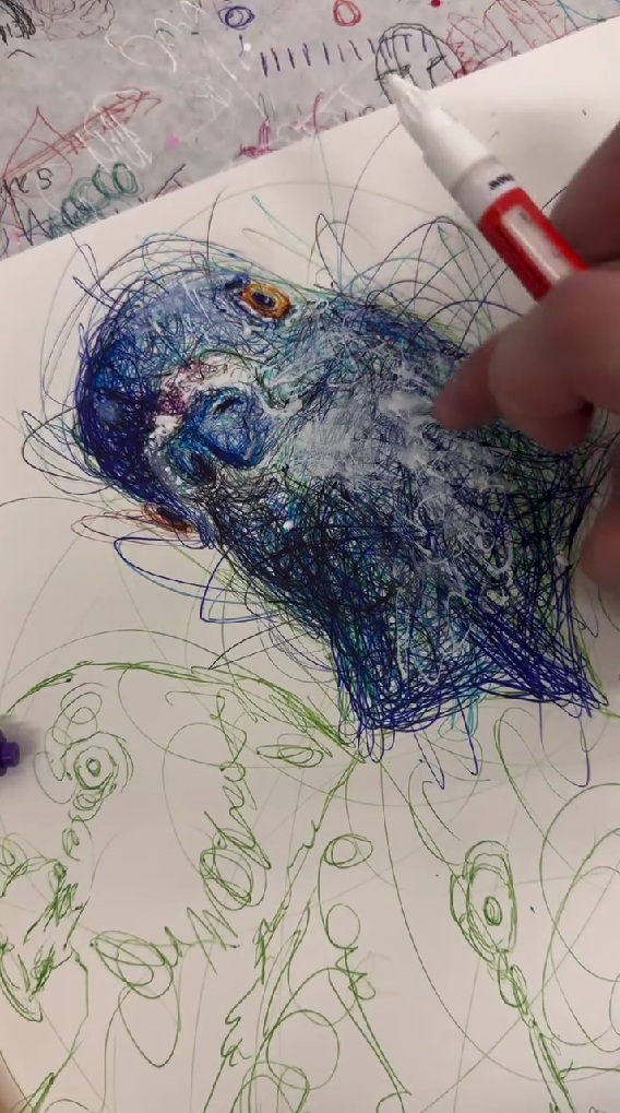 ボールペンでぐるぐる落書きしてるだけ、と思ったら……「これはまじですごい」 驚きの完成作品が130万再生「どうなってるんだよ」【海外】