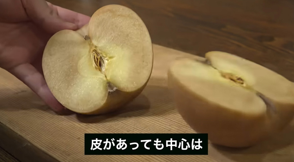明らかな変化が見られた牛肉を回収して調べます。牛肉は、水分が蒸発してしまい重さが108グラムになりました。同じく放置したリンゴやトマトも変色してしまいました。実際に食べてみて味の変化も調べます(※読者のみなさんはマネしないでください)。
