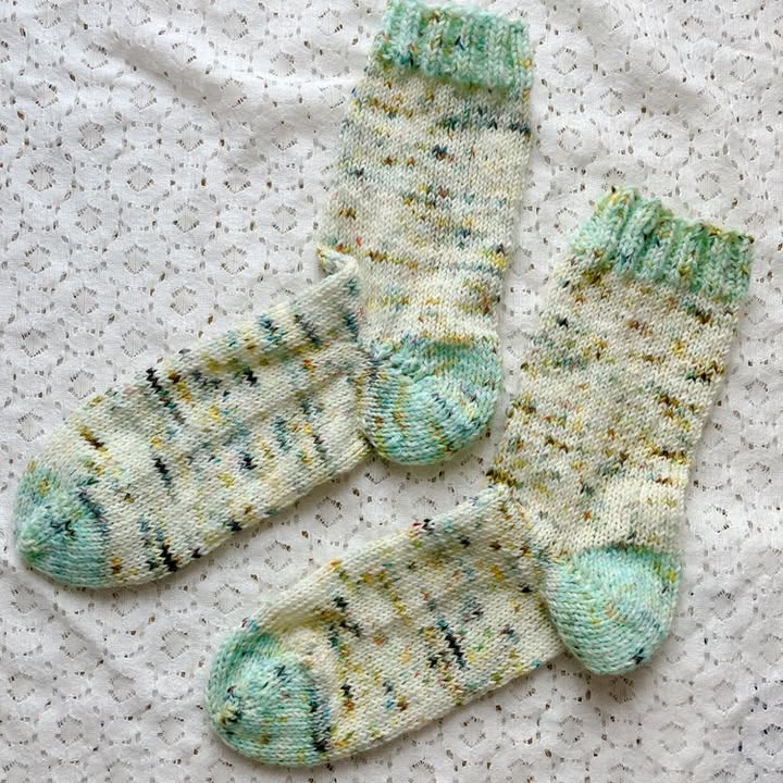 グリーンのソックスを編みました(画像:投稿者提供)