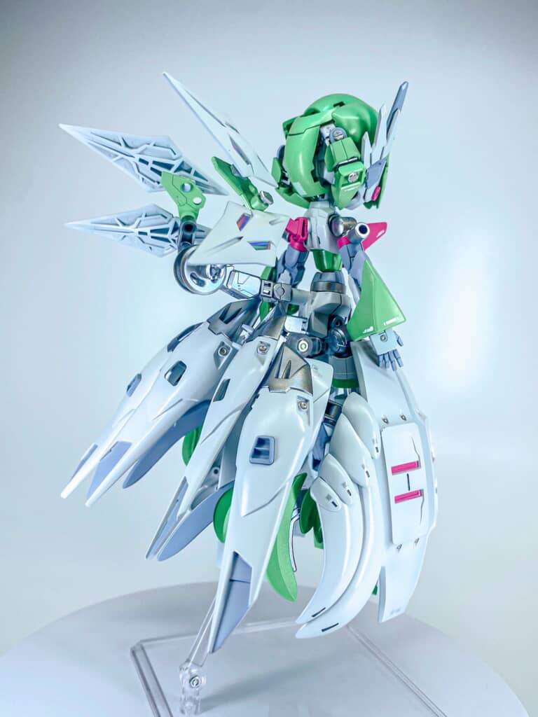今回ガンダムのプラモデルをミキシング(複数のキットを組み合わせる手法)し作り上げたのは、「ポケットモンスター ルビー・サファイア」で初登場した「サーナイト」。緑と白を基調にしたカラーリングと、ドレスをまとった女性のような柔らかなフォルムが特徴のポケモンです。