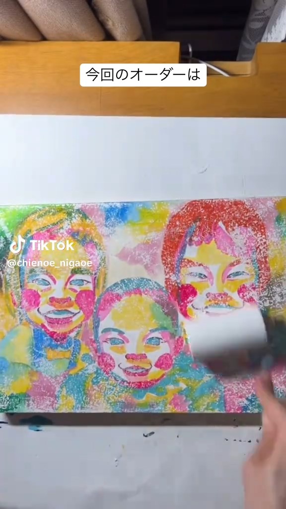 ある似顔絵作品のユニークな技法が、TikTokで反響を呼び、動画は2本あわせて63万回以上再生されています(記事執筆時点)。下絵の色遣いが風変わりで、「その色で大丈夫?」と不安を誘うけれども……。