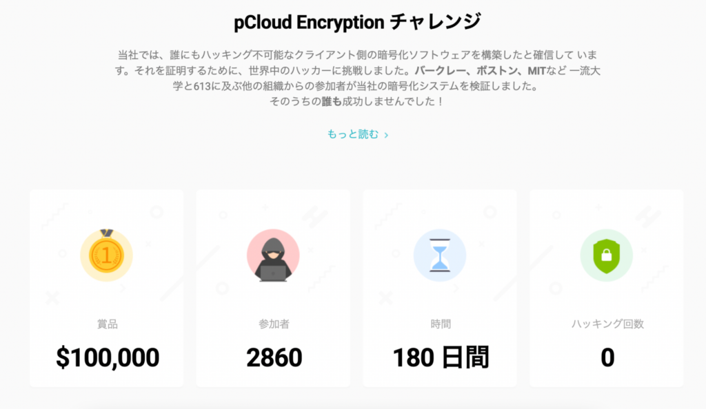 そのセキュリティの強固さは「pCloud」が自ら実施した“pCloud Encryption チャレンジ”でも実証されています。