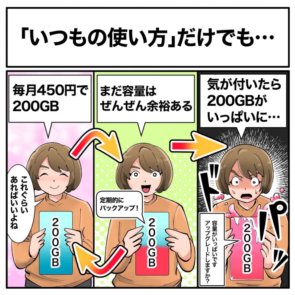 上限が足りなくなった場合は追加購入もできますし、追加ストレージを購入すればその容量分も一生使うことができます。