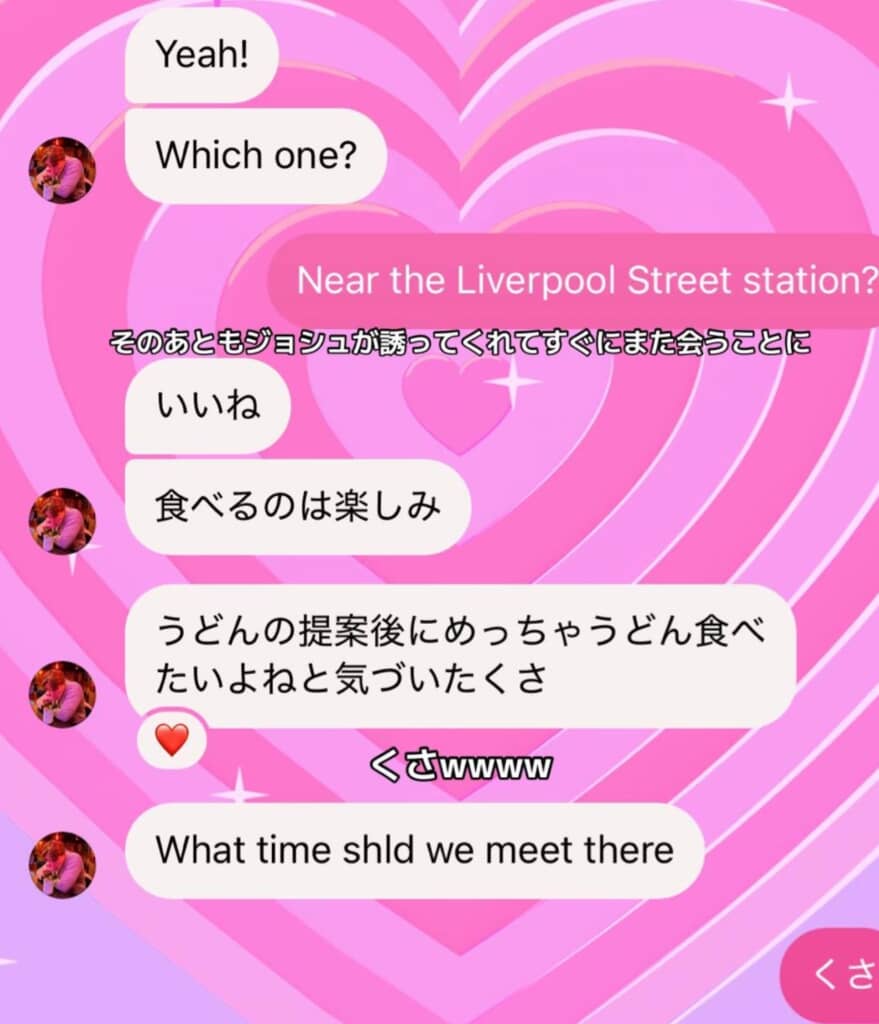 7/15)その後もジョシュさんが誘ってくれて、すぐにまた会うことに。メッセージのやり取りでも相性抜群さが伝わってくる