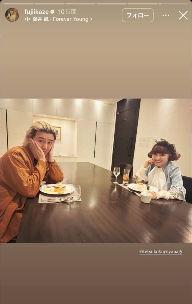 歌手の藤井風さんがが15日、Instagramのストーリーズを更新。タレントの黒柳徹子さんと食事に行ったことを報告しました。